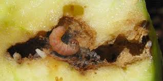 Las hembras ponen entre 20 a 60 huevos, naciendo las primeras orugas una semana o dos después, siempre dependiendo de las condiciones favorables o no de la temperatura. Una vez han despertado a la vida se dirigen hacia el fruto en donde roen su epidermis durante uno o dos días y luego cuando ya han hecho ese orificio redondo característico en la fruta, penetran hacia su interior en donde pasaran sus cinco fases de desarrollo larvario.